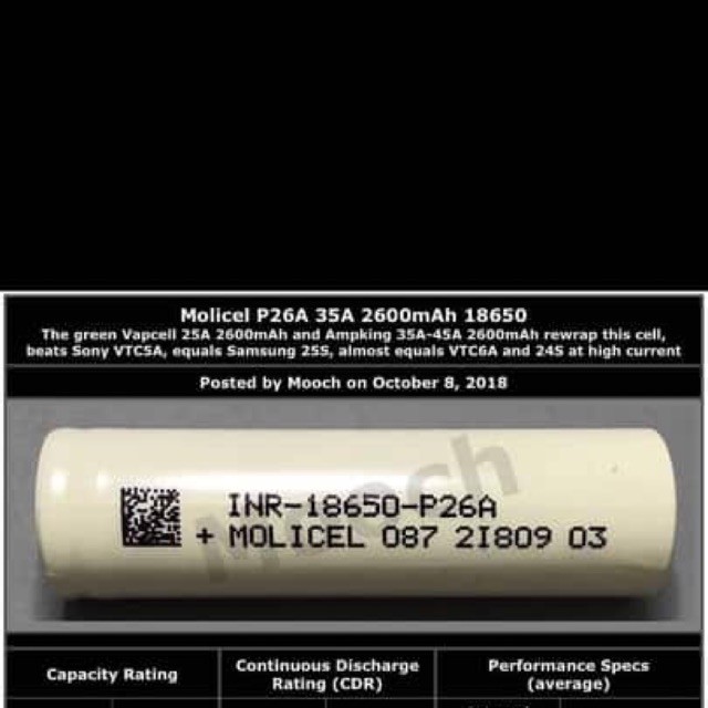 Molicel 18650 Mooch / Molicel P26a 18650 2600mah 25a Vape Battery Free Uk Delivery Vape Green : Singles cells with tabs or without samsung, lg, panasonic. We don't have to worry about getting low grade, counterfeit, or old cells and molicel is willing to sell to the vaping community. Aktuelle preise für produkte vergleichen! The combination of their great performance along with their availability from authorized molicel vendors makes them the best 18650 choice in my opinion for moderate to high power use in any device. We have almost everything on ebay. Aktuelle preise für produkte vergleichen!